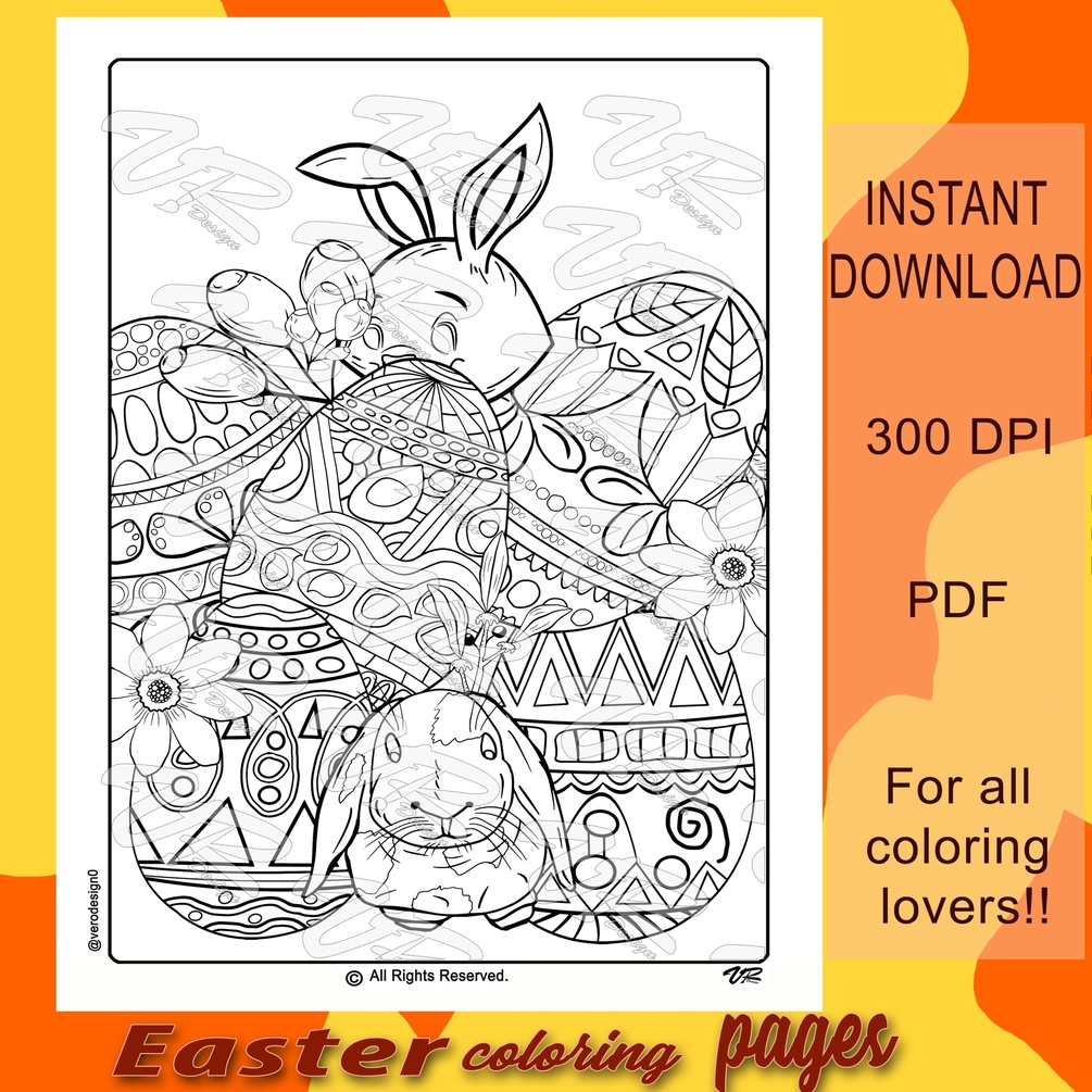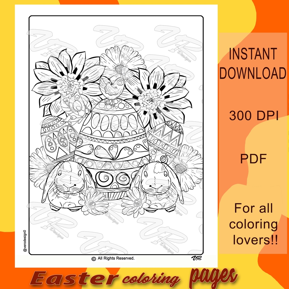 You'll' get: Printable easter coloring pages PDF F I L E : - sized at 8.5 x 11 inches (letter size) - * The jpeg files can be adjusted to your desired dimension - has a resolution of 300 dpi - will not have the watermark over the image - Easter egg coloring pages pdf is a digital file; nothing physical will be mailed to you